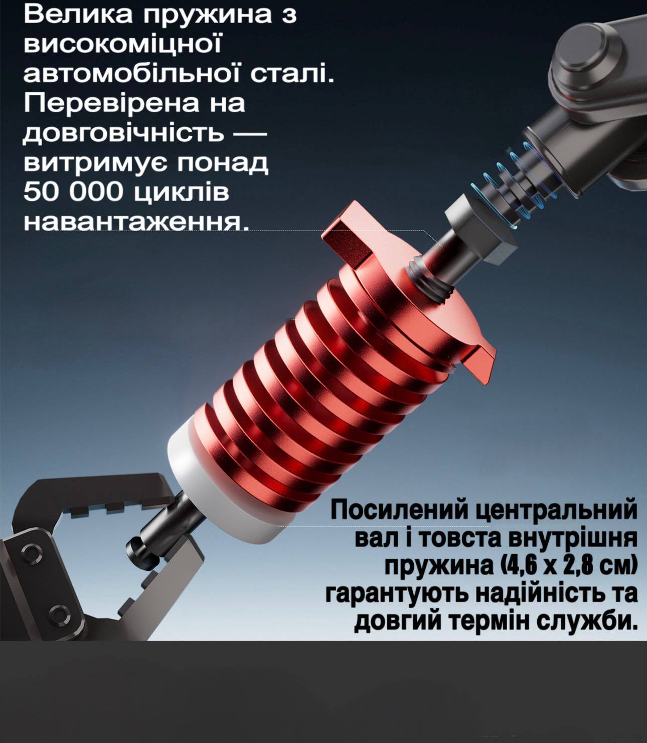 Міцна конструкція з полімерних композитів і сталевою пружиною.
